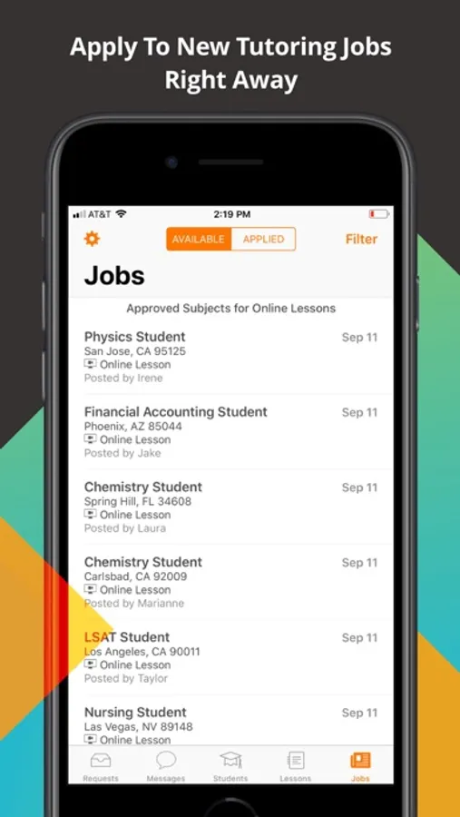 Get the free Tutor on Wyzant app today. Our app makes it easy to quickly grow your tutoring business, stay in touch with students, and get paid faster.