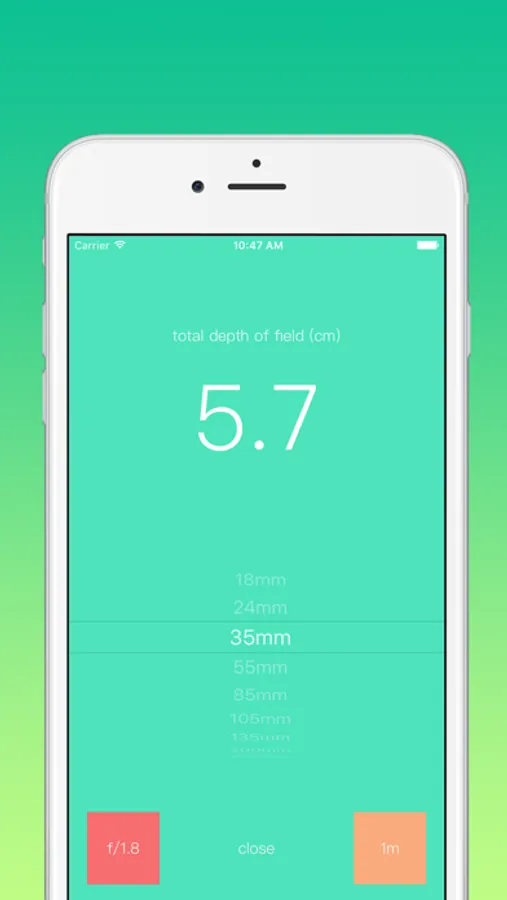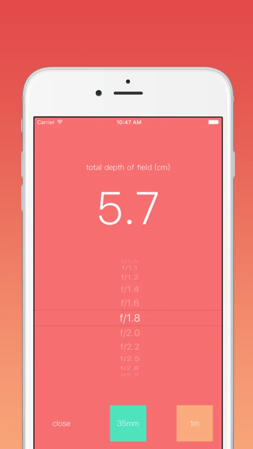 * App calculates DoF with circle of confusion of 0.025 mm.