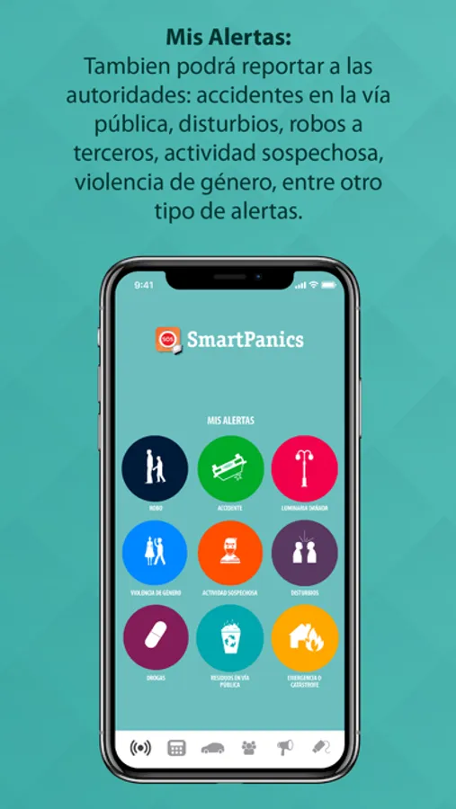 - Police, fire and medical panic buttonswith geographic position notification, soundand images of your emergency (MY ALARMS)
