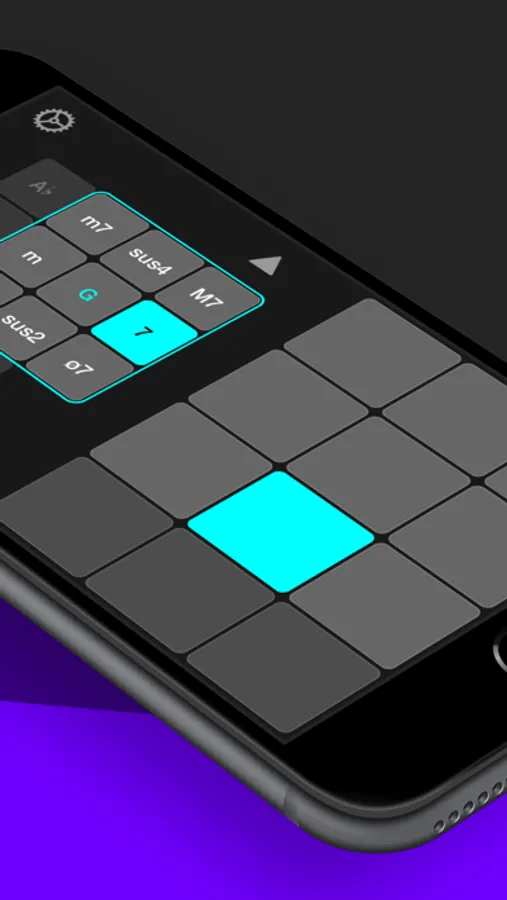 Unique chord selector allows you to play any available chord instantly. You don't need to make any pre-configurations or presets. Just tap on the key button and slide your finger to the required chord type. With a little practice you will be able to select any chord in a fraction of a second.