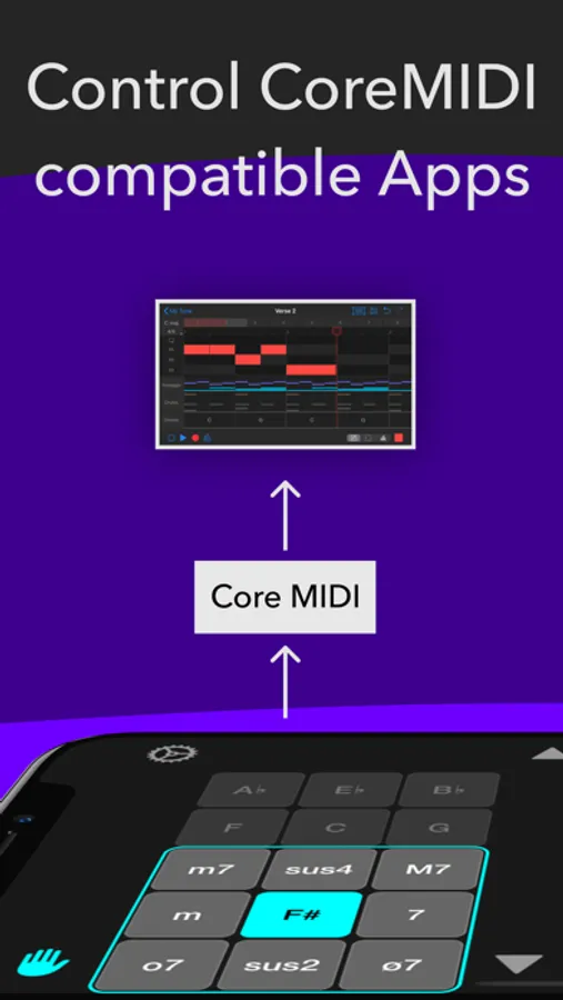 You can use ChordUp to control your favourite soft or hard synthesizer through Core MIDI connection or though Audiobus 3 MIDI ports.