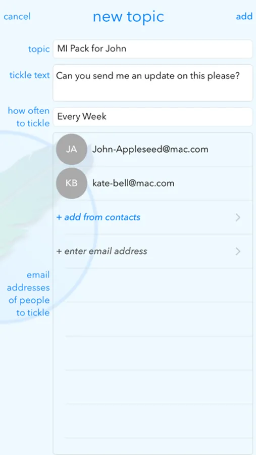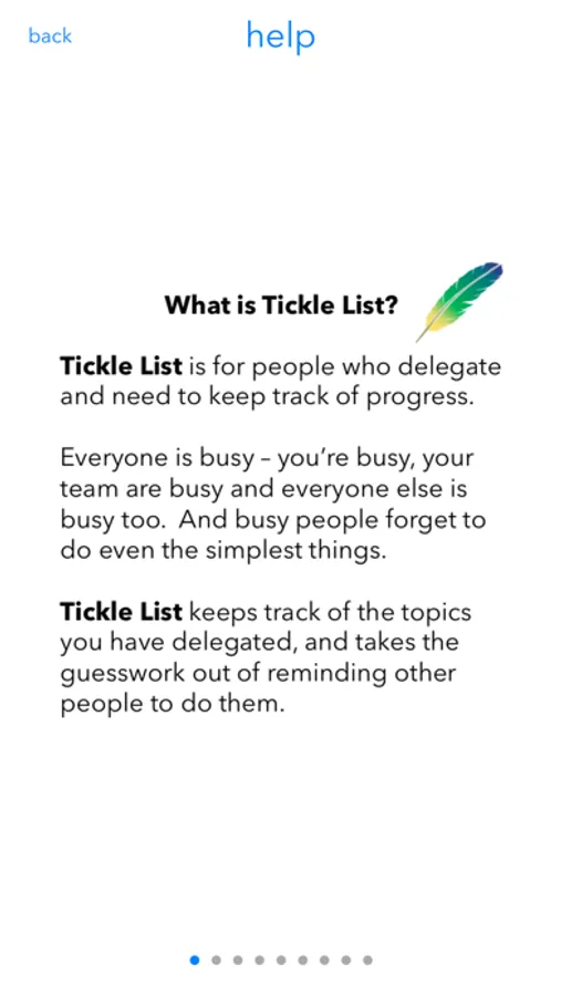 Tickle List is for people who delegate and need to stay on top of progress: it's like a to-do list for the things other people are doing for you. Tickle List keeps track of all the tasks you have delegated and takes the guesswork out of reminding other people to do them. It helps you manage a busy team and keep them focused on the things that matter to you!