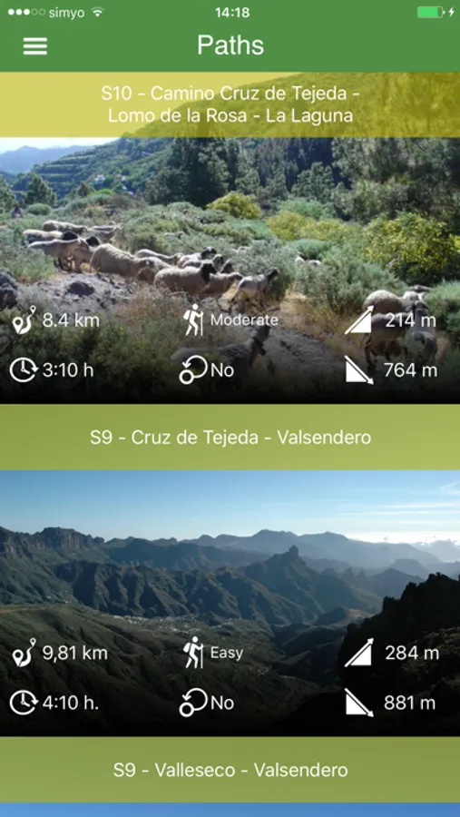 You can use this application and its maps without any connection to internet to walk through the Network of Paths of Valleseco.