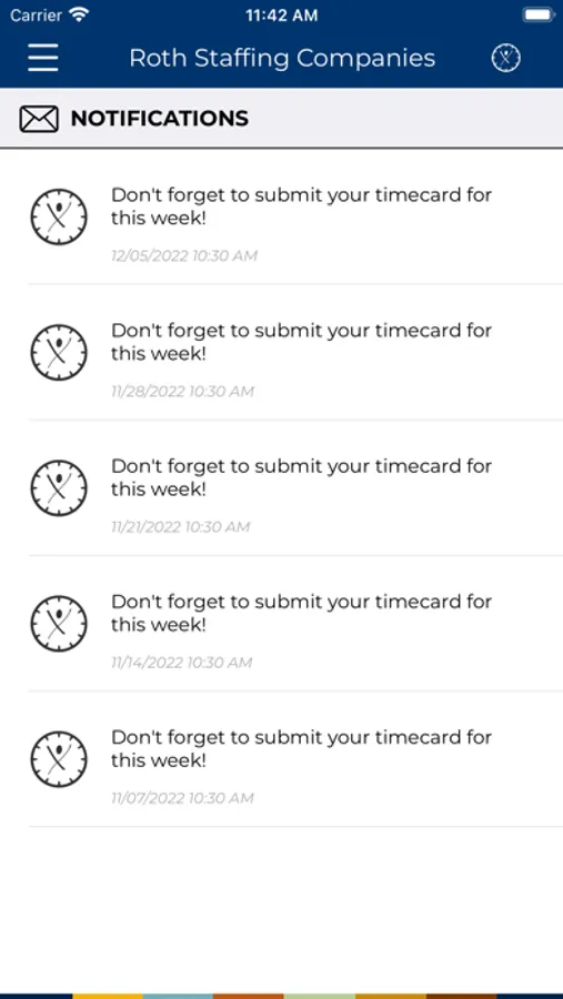 Our free mobile app allows Ambassadors to submit their timecard, upload responses to Ambassador Program questions, and manage communications for most Roth Staffing business lines (Ultimate Staffing, Ledgent, Adams & Martin Group).