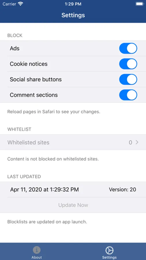 - Updatable blocklists: We update the lists, you run the app, you get the updates. You can also update manually if you like.