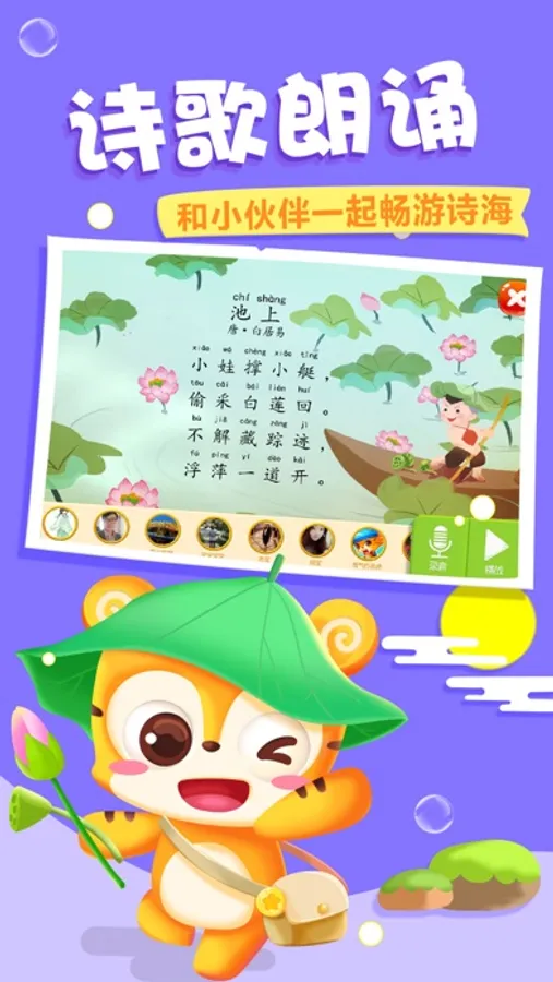*全面覆盖学前常用汉字,5000多个词语学习,100多首古诗,50个主题章节学习课程