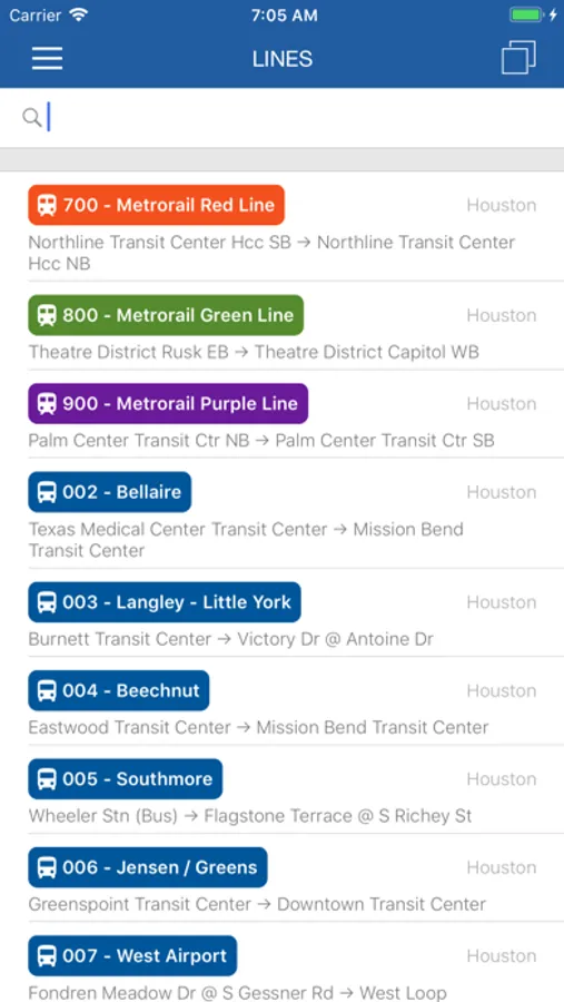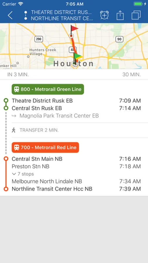 ezRide Houston offers offline trip planning in the public transport system of Houston METRO.