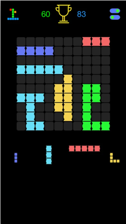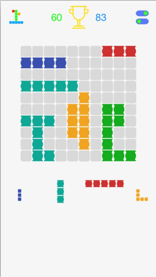 You will put classic blocks into a 10x10 grid panel. If there are at least 6 squares with the same colour in a row or on a column then you could get score.