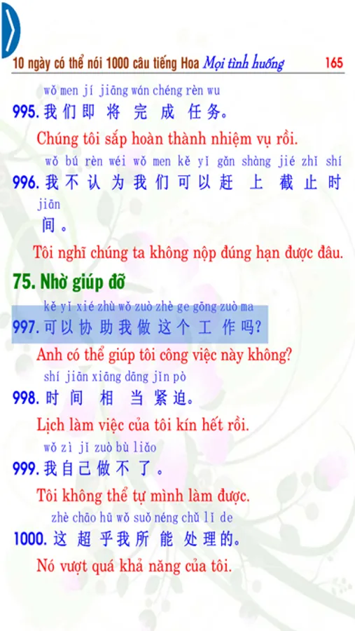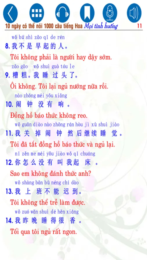 Quyển sách “10 ngày có thể nói 1000 câu tiếng Hoa – Mọi tình huống (10 天会说1000 汉语句 - 全情况)” gồm 165 trang được thực hiện theo tiêu chí “Học tiếng Hoa mọi lúc mọi nơi” khi trong tay có chiếc điện thoại thông minh. Bản thân sách SmartBooks của chúng tôi đã rẻ hơn sách giấy nay chúng tôi giảm thêm giá bán SmartBooks để kích cầu đọc sách và sử dụng sách Smartbooks trong kỷ nguyên số hiện nay. Các bạn sử dụng SmartBooks của chúng tôi, các bạn đã tiết kiệm rất nhiều tiền, mà tiết kiệm tiền trong thời kỳ khủng hoảng hiện nay là việc nên chọn ưu tiên hàng đầu! Trong quá trình biên soạn không khó tránh khỏi những sai sót ngoài mong muốn, hy vọng sự đóng góp quý báu từ các bạn giúp quyển sách ngày càng hoàn chỉnh hơn. Xin chân thành cảm ơn và chúc các bạn học tập hiệu quả! Những tiện ích khi bạn sử dụng Sách Thông Minh - SmartBooks của chúng tôi: Sách được tích hợp âm thanh (audio) vào trong sách, đánh dấu từng câu khi đọc, khi cần nghe lại câu vừa mới đọc hay câu nào đó thì bạn chỉ cần chạm tay vào câu đó thì sẽ phát âm thanh; Ngoài ra SmartBooks còn có tính năng thu lại giọng đọc (giọng của bạn tập đọc câu vừa học, vừa nghe) của bạn bằng cách nhấn vào nút Recorder (icon Micro), khi bạn nhấn vào icon “Headphone” “Nghe và viết”, xuất hiện màn hình có rất nhiều tính năng giúp bạn nghe và viết lại câu vừa nghe bằng phím hay bằng tay,… Sách được thiết kế để sử dụng mọi lúc mọi nơi khi trong tay bạn có chiếc Smart Phone. Đây là một bước đột phá của chúng tôi trong thời đại công nghệ số nó sẽ giúp các bạn rất nhiều trong việc học và đọc sách.