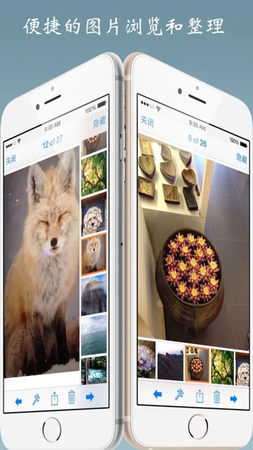 6、全部页面支持横竖屏切换,半透明黑色工具栏,界面最接近系统相册;