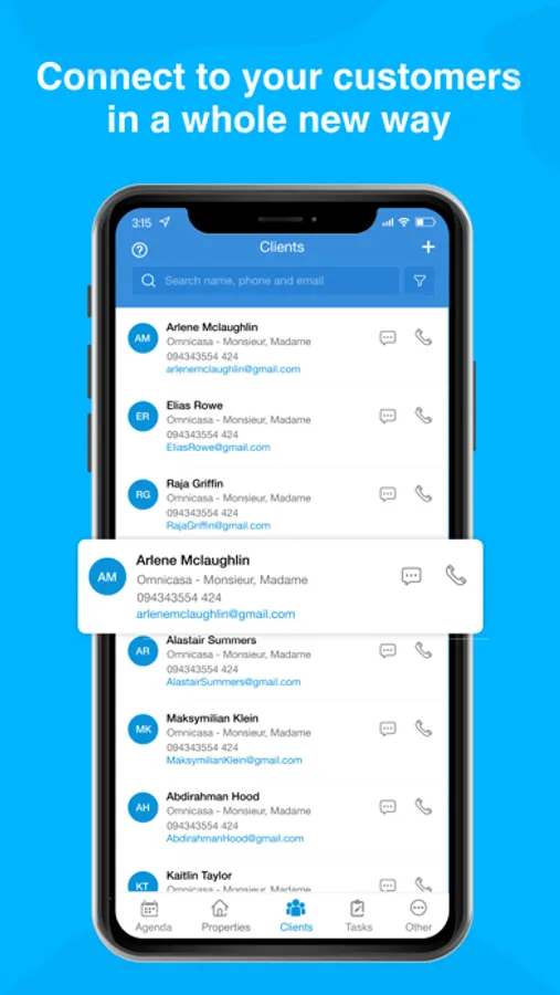 - Support to Auto complete search faster and exactly by: First Name, Last Name, Email, Phones, ..