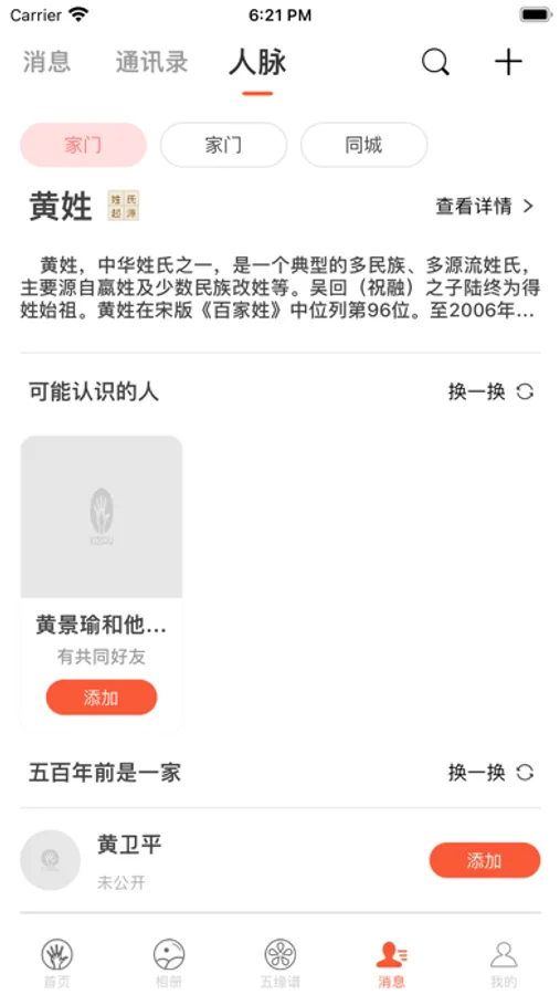 打造以“家庭”为核心,同姓、家乡为重点的人际关系圈,让你稳定亲缘,放心交友。