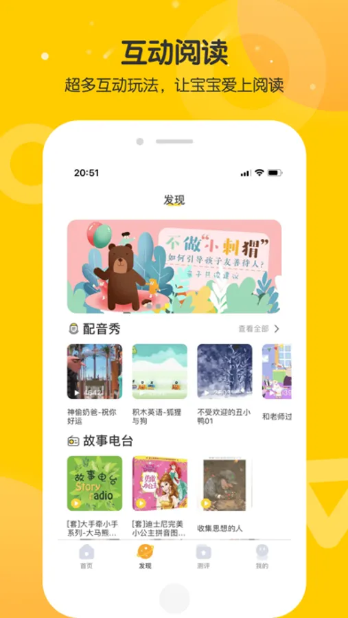 互动宝宝是为孩子们精心打造的绘本在线借阅平台,从幼儿绘本阅读的实际需求出发,为家长提供从选书—借书—伴读指导到阅读能力测评等一站式解决方案。有效的解决了选书难、买书贵、借阅环节繁琐,阅读效果不可控等亲子共读痛点,帮助孩子养成受益终身的阅读习惯。
