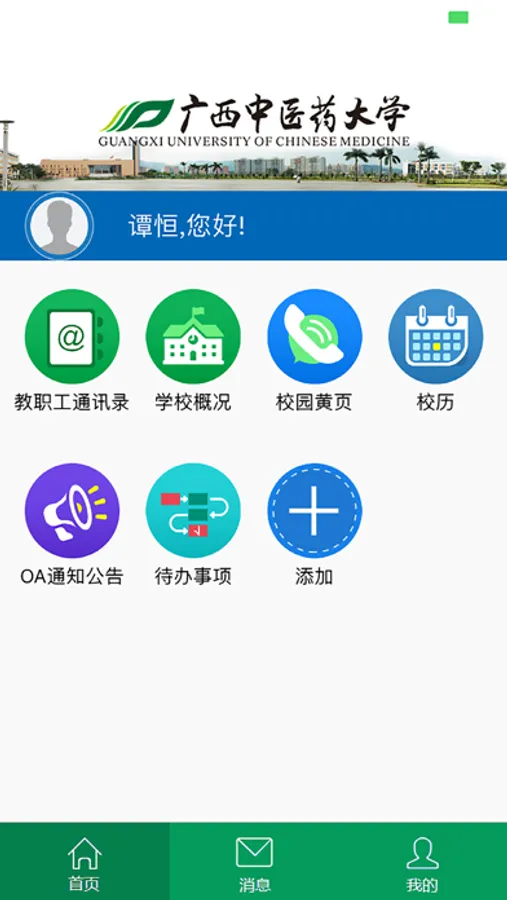 广西中医药大学校园移动办公平台,采用iPhone等智能手持终端设备作为移动终端,通过校园内外、公共场所WiFi环境、移动运营商提供的GSM、GPRS、3G、4G等网络,接入学校的网络的办公系统,使办公自动化系统的应用摆脱地理空间的约束,实现学校日常工作。系统的主要功能包括校园概况、OA通知公告、校历、待办事项及校内通讯录等功能。