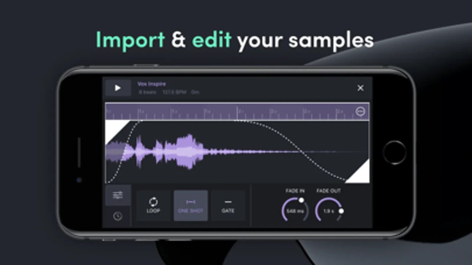 • Import your own samples (MP3, WAV, AAC, M4A, AIFF, 16/24 bits)
