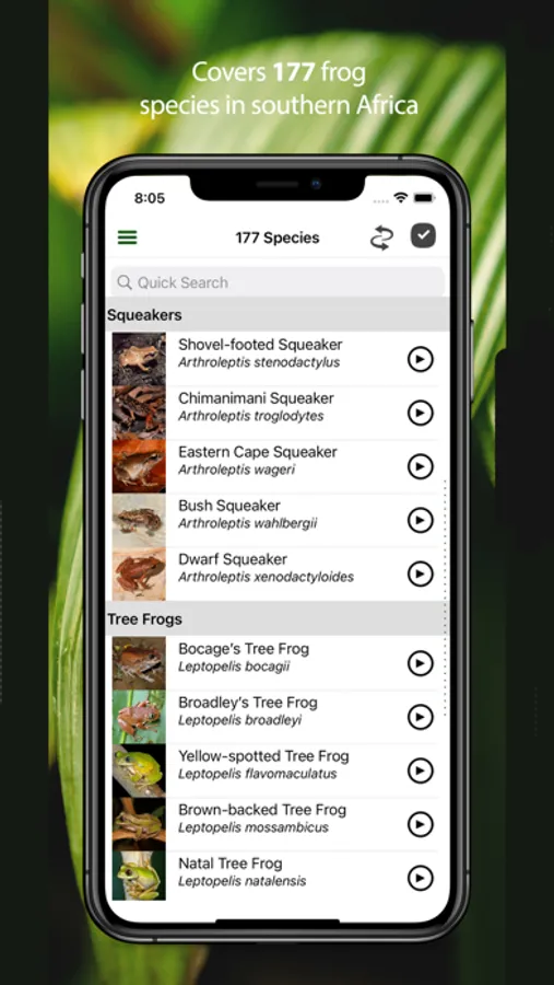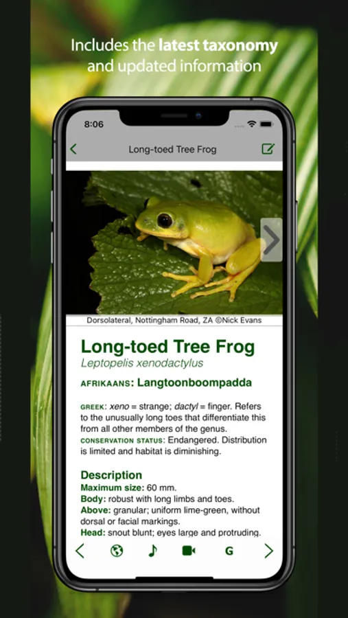 Take the definitive guide to frog identification on your nature trips for quick access to frog calls, videos and photographs. Intuitive and accessible for all levels, the app introduces the user to all 177 frog species in the region.