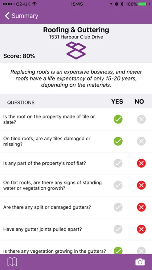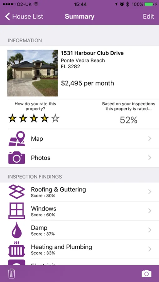 • Automatic property rating given based on your findings.