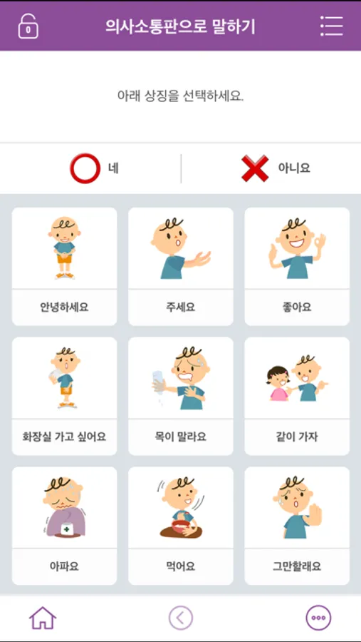 복합적 의사소통 요구를 가진 저학년 장애 아동들이 자주 겪는 상황을 300여개의 상징으로 구성하고 상징을 선택하여 낱말형 또는 문장형(상징+상징)으로 의사표현이 가능하도록 지원하는 버전