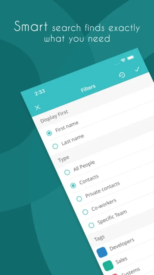 • Set private, public or teams' contacts