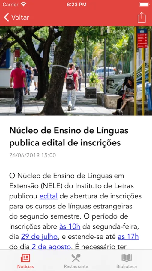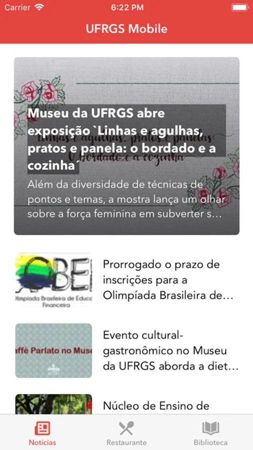 Primeiro aplicativo para dispositivos móveis da Universidade. Possui, em sua primeira versão, enfoque em informações e tarefas úteis do dia a dia, em especial naquelas comumente desempenhadas pelo seu público discente, tais como consulta às notícias veiculadas na página da Universidade e ao cardápio dos restaurantes universitários.