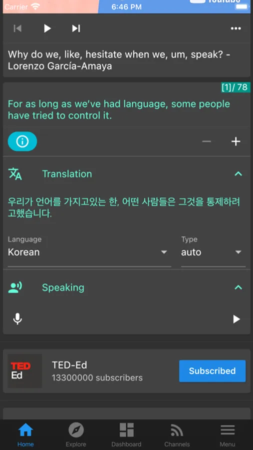 - Watch videos from your favorite YouTube channels: Different from other apps, this app allows you to watch videos from your favorite YouTube channels as long as the video has its subtitle.