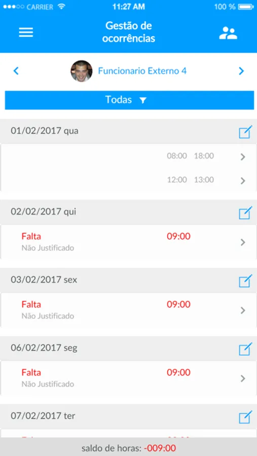 Versão para iOS do sistema de controle de frequência NewPonto, desenvolvido pela Norber Software.