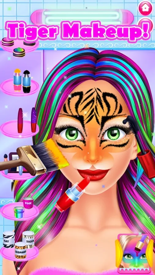 Level 2: Let's do a face paint design. Tiger face paint makeover or choose fun new designs like kitty cat or cheetah!!