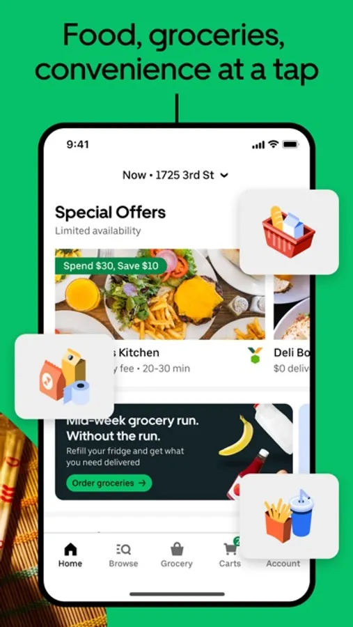 Order from grocers such as Albertsons and SEG. Other delivery partners in the pharmacy, convenience, and retail space include CVS, Walgreens, 7-Eleven, Wawa, BevMo!, and Total Wines.
