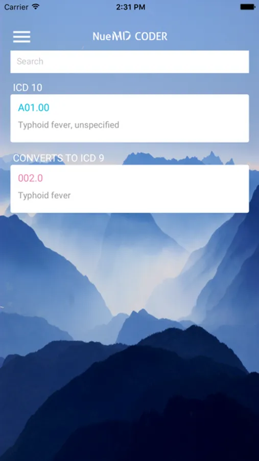 • Search by ICD-9/10 code, or by description to see results in both code sets. You can even search by voice!