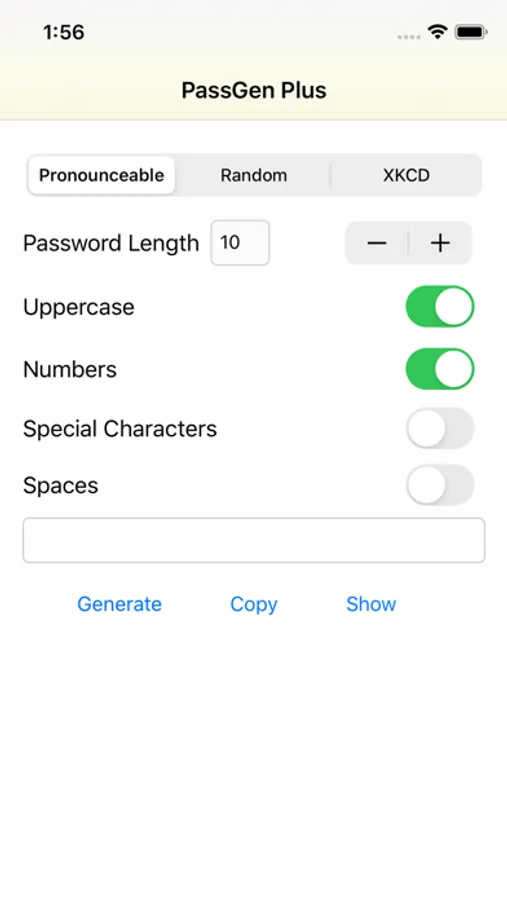A simple password generator that generates pronounceable passwords, random passwords or a random 4 word passphrase.