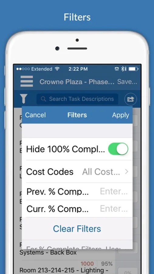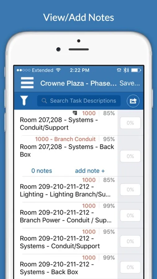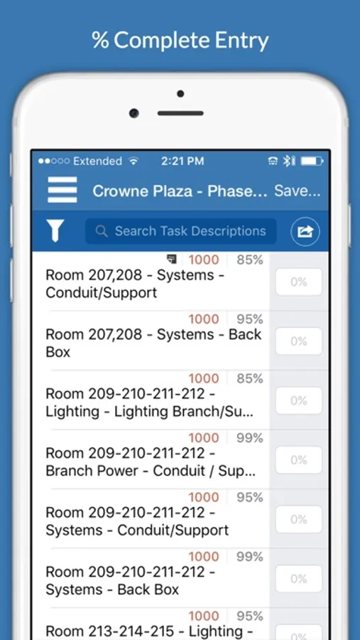 As a companion for the JPAC® 4.1 web application, the JPAC® % Complete Entry App allows personnel to walk their jobsite and enter their task by task % completion directly from their iPhone or iPad, making their walkthoughs easier than ever!