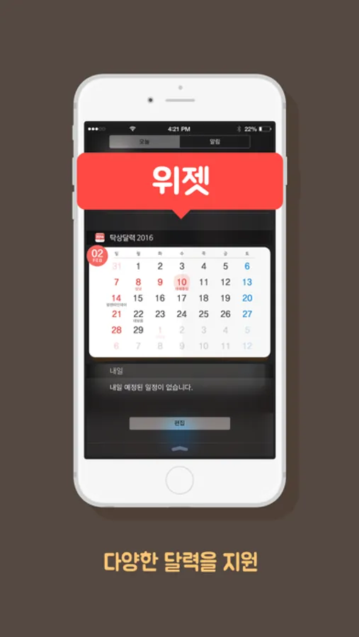 - 완료를 누르면 2016탁상달력 위젯이 알림센터에 설정됩니다.