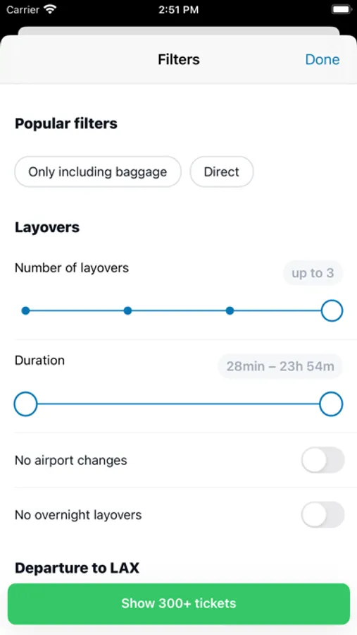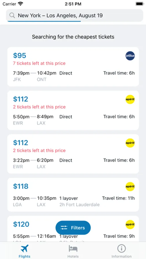 • use convenient filters when choosing airline tickets: (morning, afternoon, evening), by the number of transfers, airlines, airports and payment methods;