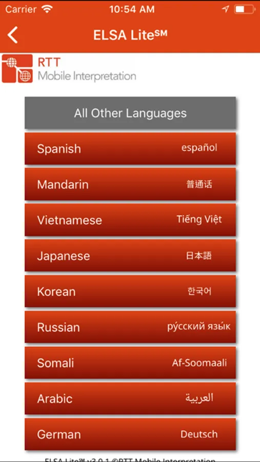 through ELSA Lite, your organization must establish a service agreement with RTT Mobile Interpretation. The language ID and the cultural communication tips functions are free for anyone to use anytime.