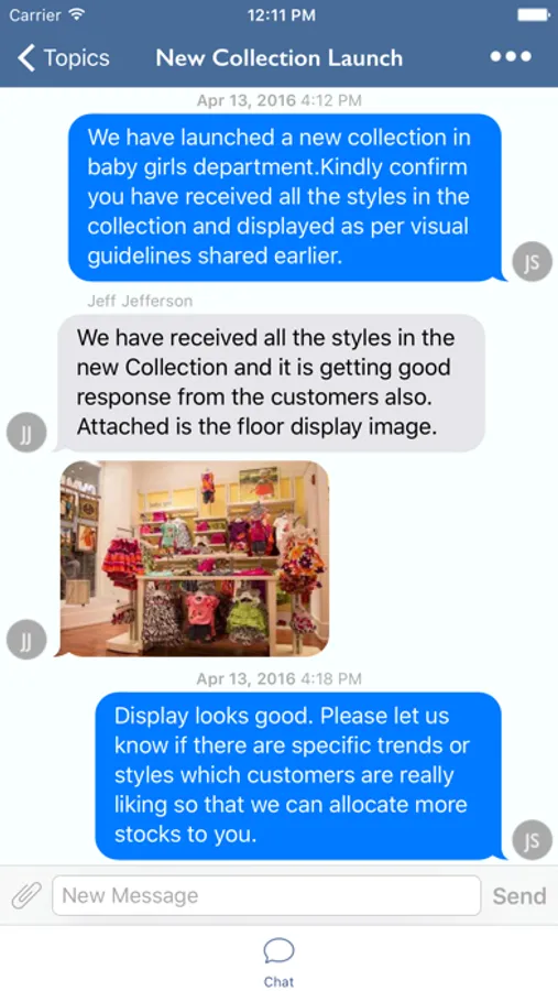 - Chat : Store managers can take a screenshot of the report and start a conversation with other users by using the in-built Chat feature.