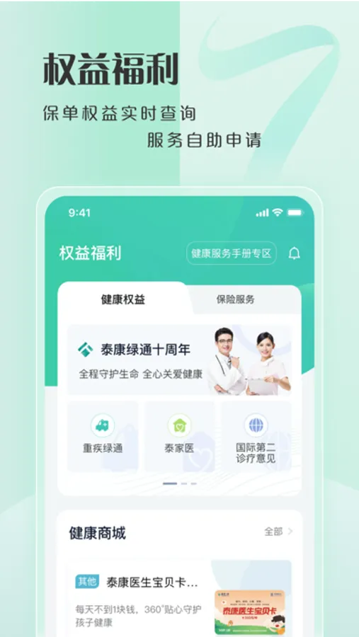 【权益福利】保单客户多种权益实时可视;健康服务一键申请。让服务更便捷、更安心!