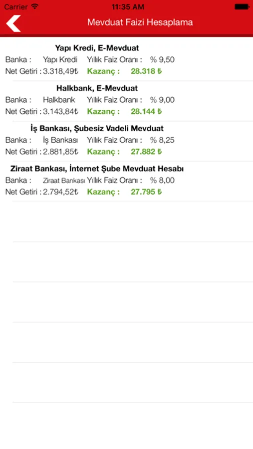 Mevduat Faiz Hesaplama (banka karşılaştırmalı)