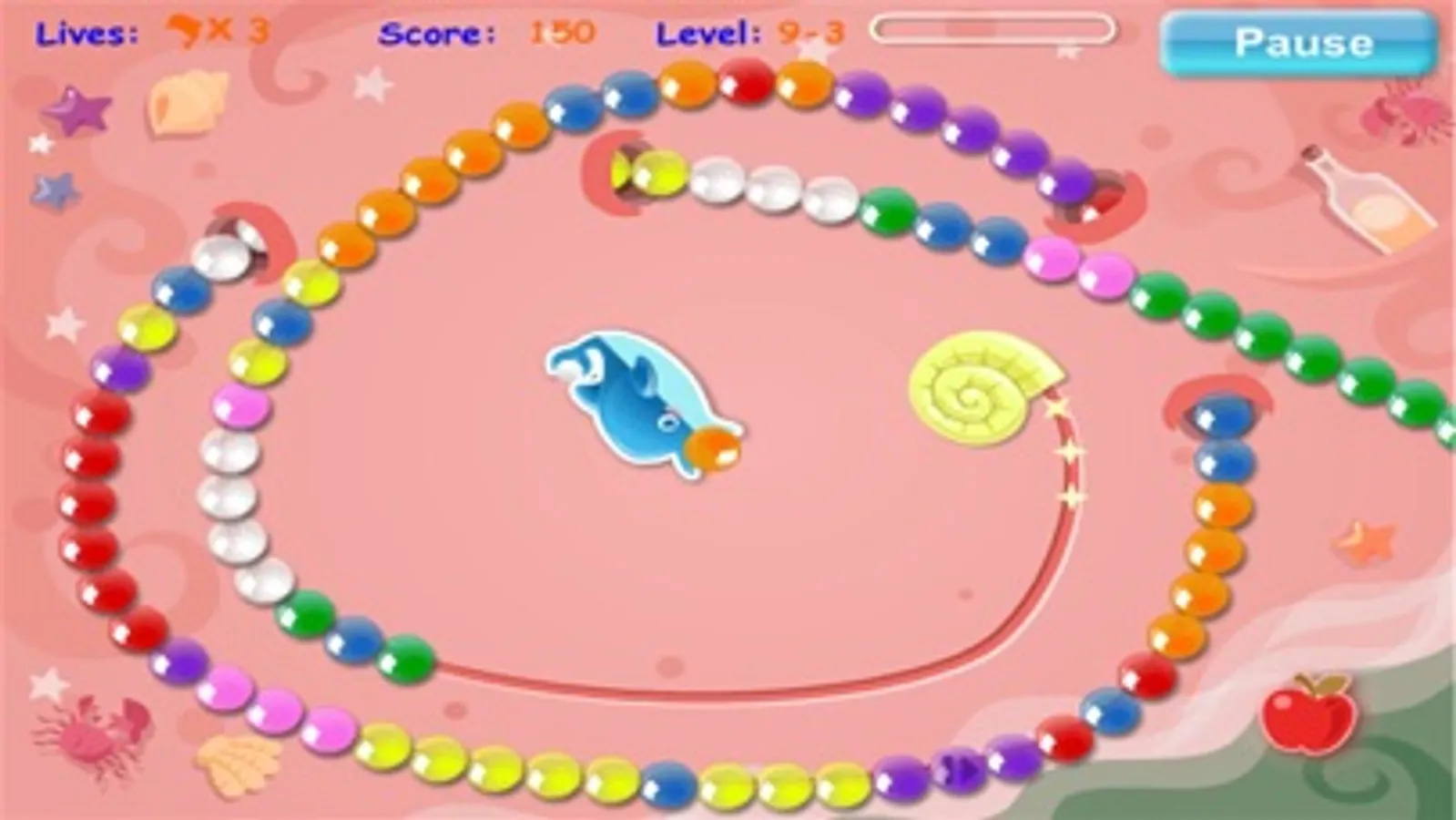 1, click to shoot out a new ball into the colourful balls, while make 3 or more the same color balls together, they explode and you get score.
