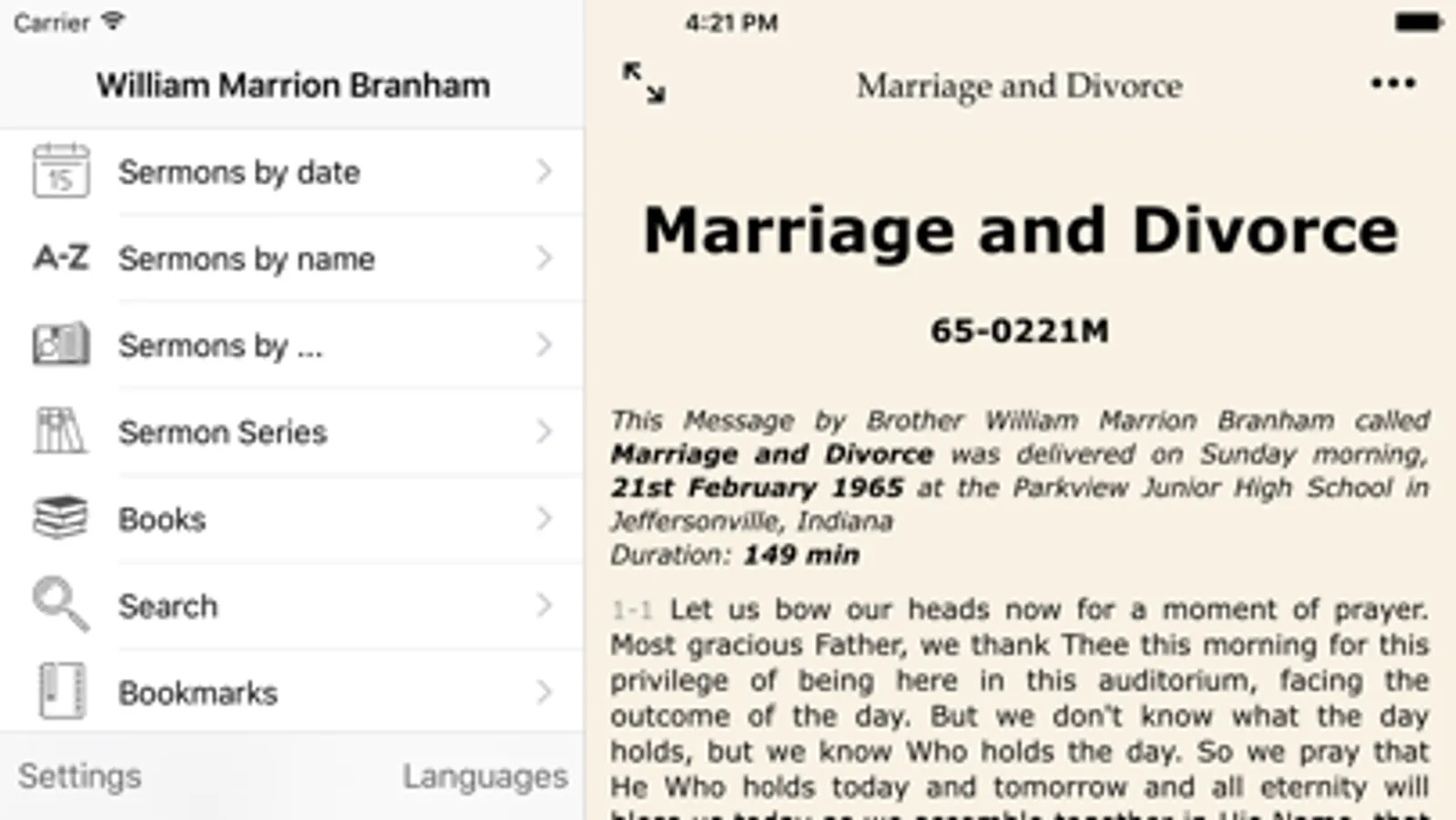 The application "The Message" is a collection of sermons of William Marrion Branham.