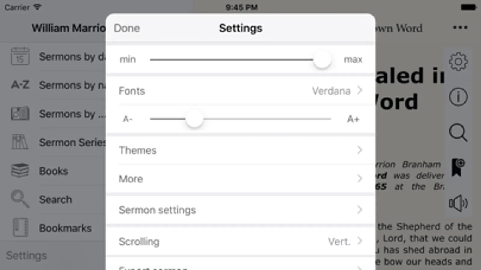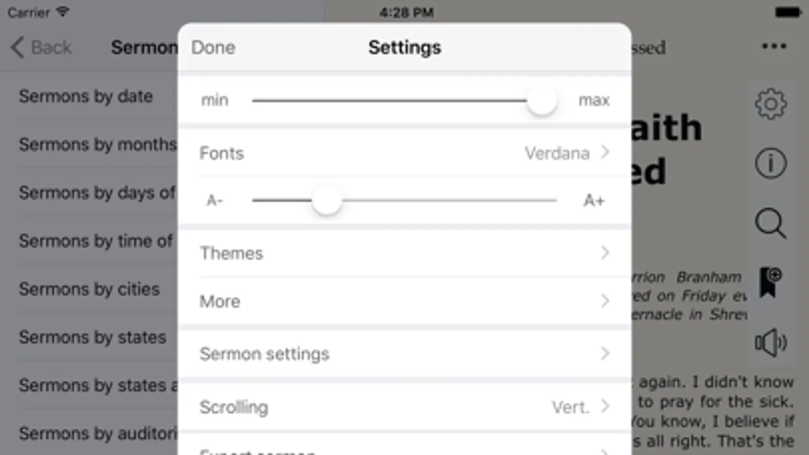 The Application offers many opportunities among others: read and print the text of sermons, search by keywords, listen to the audio, share, Highlight favorites texts and also make notes.