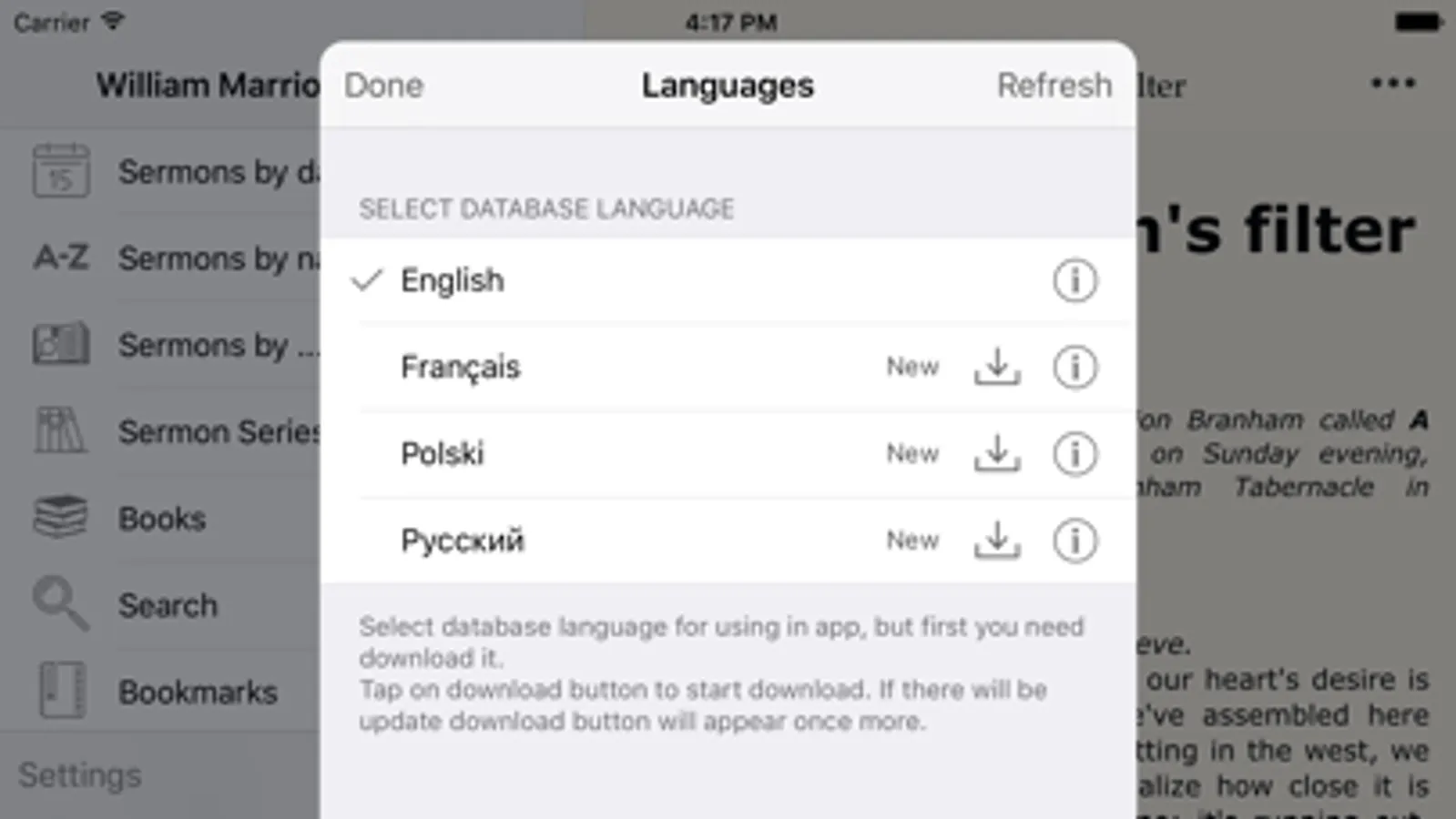 The application contains sermons in English, French, Polish and Russian. The number of languages supported by the application, as well as the number of sermons added, are not final.