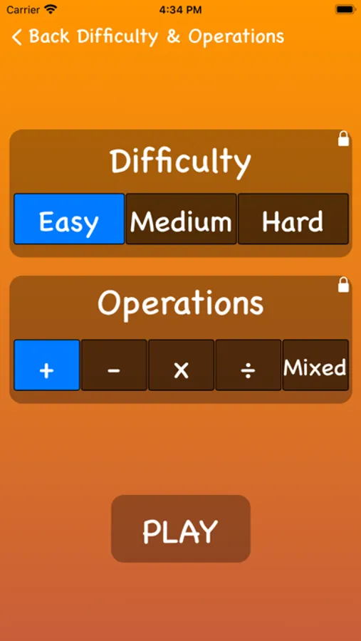 The free version offers Addition at the "easy" level. No peer playing is possible. The full version offers all the following features.