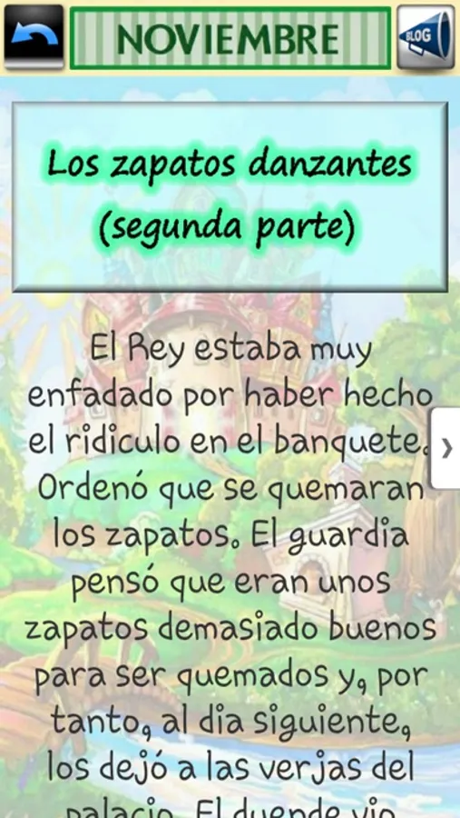366 cuentos encontrarás en esta app para tu móvil, selecciona mes y se abrirá el calendario para que selecciones un día y abrir el cuento. Cuentos infantiles seleccionados entre clásicos, cortos y todos con su moraleja para divertirse y aprender con ellos.