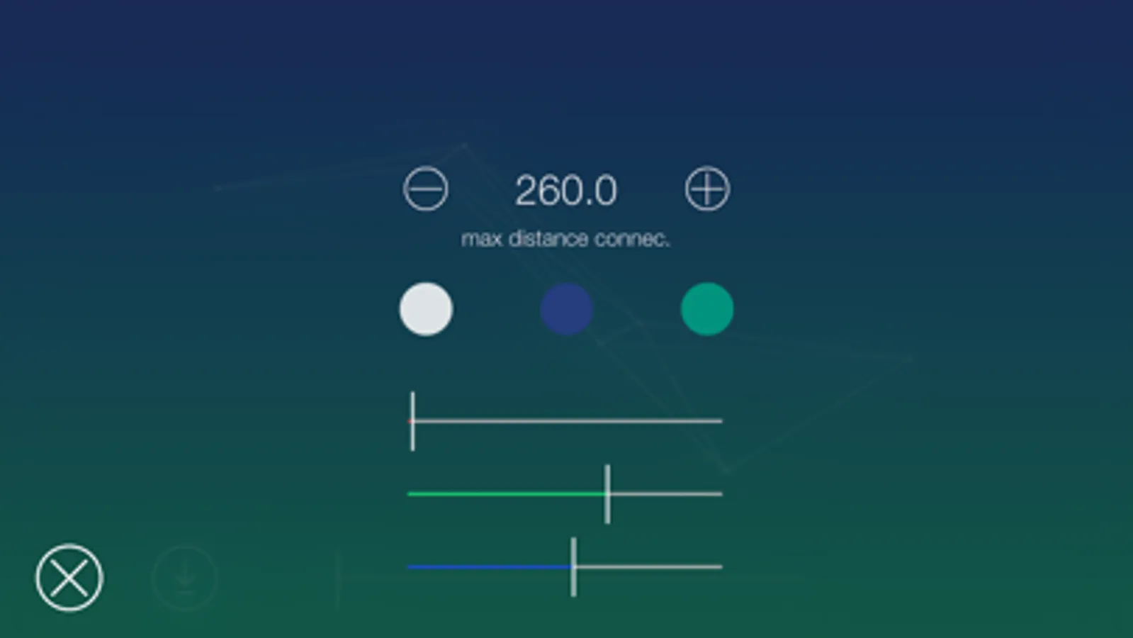 Touch the screen to generate new points, adjust their movement speed, pick a color for the lines connecting the dots, change the background color, and enjoy your animated design.