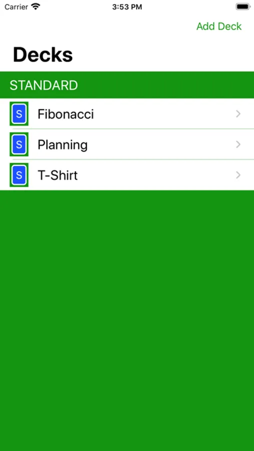 Improve your sprint planning and agile goals with themed decks. There are three standard decks to begin. They are Fibonacci, Planning, and T-Shirt. You can add custom decks to fit your needs.