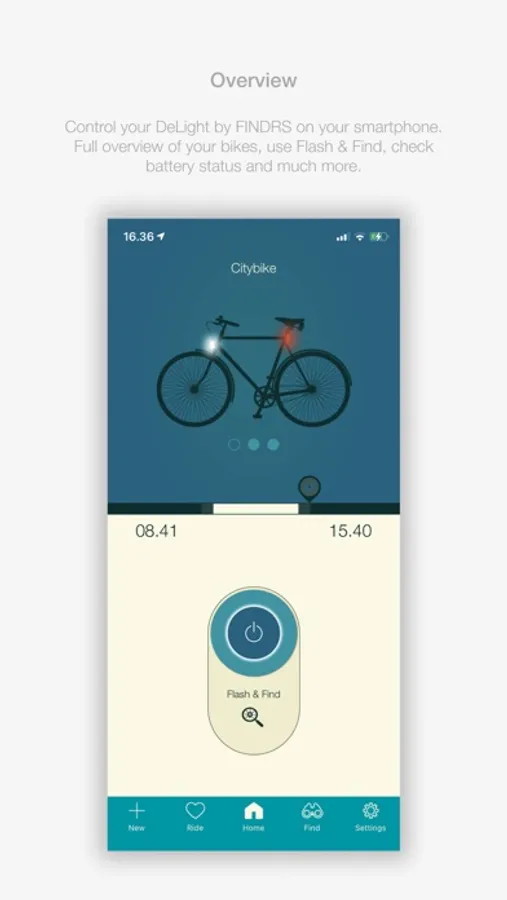 The DeLight is an intelligent front and rear bicycle light, packed with features making your ride safer. In addition the app supports the FINDRS Network, which is a community of FINDRS app users helping each other locating lost belongings.