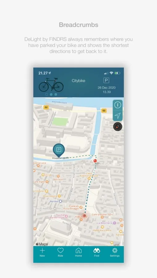 • The DeLight app remembers where you last parked your bike and will guide you back to it using the map function in the app.
