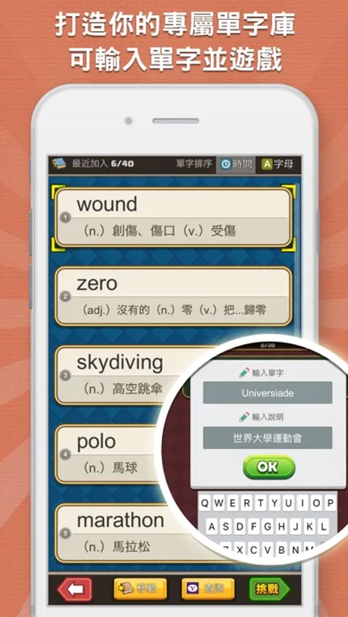 ■「自建字庫」可創建自己的單字來學習或進行遊戲!