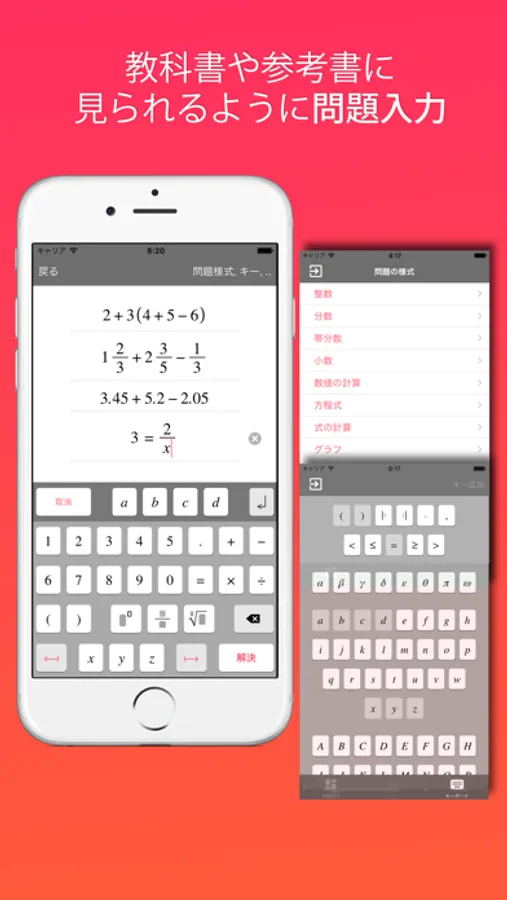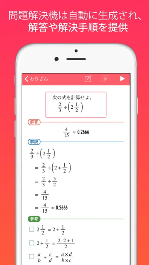 人工知能(AI)技術を使用しており、問題を直接入力するとそれを自動的に解き、問題を解く手順と注解を提供します。 問題を解く手順はアニメーションで見ることができるため、問題を解くすべての手順を逃すことはありません。