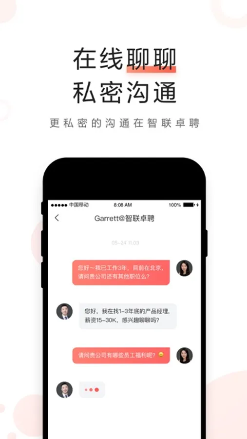 3.卓聘聊聊:找工作你更是个慎重的事儿,多聊几句总会让放心点,我们这里聊天立马有回应;